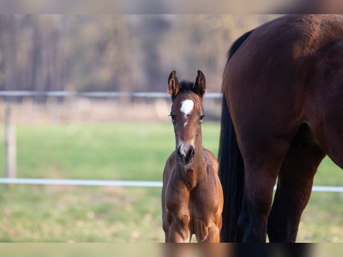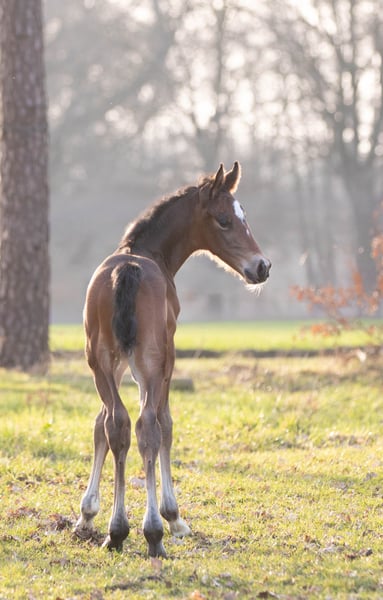 Arno M nació a principios de marzo en nuestra cuadra y ahora está a la venta. Hasta ahora, ha demostrado ser muy sociable y cercano a las personas. No se puede negar su ascendencia de su padre, My Blue Hors Santiano. Por parte de madre, proviene de la famosa línea de la Weltfee. Su abuela, Silvana, obtuvo el título de yegua de élite el año pasado, y su madre, Valea, realizó una buena prueba de yeguas en 2023, siendo galardonada con la distinción de la Prima de la Asociación.