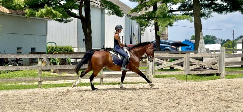 On the ground, he’s a total lovebug. Cuddly, sweet, and the kind of horse that will let you brush him for hours while making weird happy faces. Under saddle? Well… he’s fun. The “challenging in a character-building way” kind of fun. If you’re looking for a horse that’ll keep you humble, teach you lessons, and possibly make you laugh-cry mid-ride — congrats, you’ve found your match.