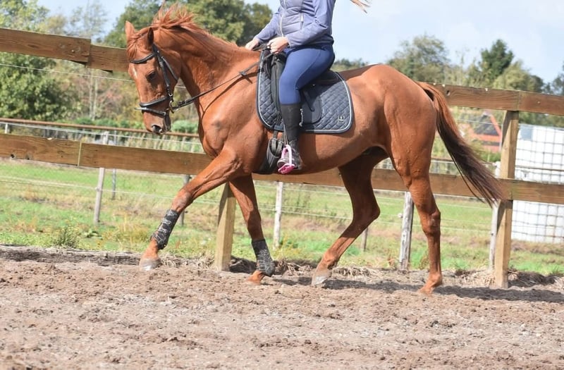 Super super brave, lieve rijpaardruin Oh ‘Herewego is de officiele doopnaam van deze ontzettend lieve ruin. Omdat ie zo lief is dat je hem wel op zou willen eten en hij zelf best wat meer koekjes mag om iets voller te zijn, noemen we hem Cookie. Cookie is vanaf het begin hier een schat van een paard. Zowel in de omgang als in de trailer, op straat , op stal en in de wei. Hij kan hier bereden worden door beginnende ruiters en loopt ruim genoeg om de gevorderde uitdaging te bieden. Ca 160 m hoog. Geen stalgebreken. Cookie heeft een volle afstamming van Medaaly x Masamba. Hij is geboren 18 april 2009. In bezit van een zeer recent keuringsrapport inclusief bloedafname waarbij hij is goedgekeurd. 4450,- incl merkzadel en dekje.
