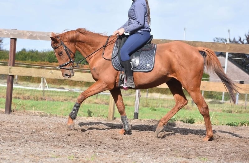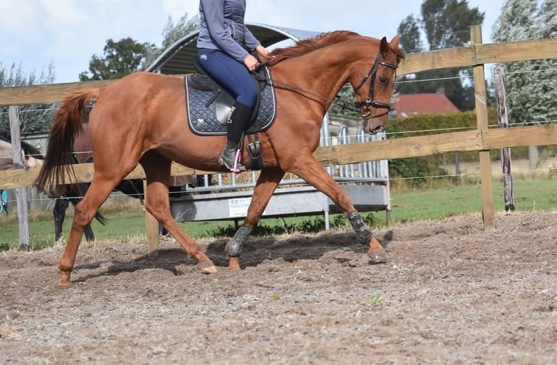 Super super brave, lieve rijpaardruin Oh ‘Herewego is de officiele doopnaam van deze ontzettend lieve ruin. Omdat ie zo lief is dat je hem wel op zou willen eten en hij zelf best wat meer koekjes mag om iets voller te zijn, noemen we hem Cookie. Cookie is vanaf het begin hier een schat van een paard. Zowel in de omgang als in de trailer, op straat , op stal en in de wei. Hij kan hier bereden worden door beginnende ruiters en loopt ruim genoeg om de gevorderde uitdaging te bieden. Ca 160 m hoog. Geen stalgebreken. Cookie heeft een volle afstamming van Medaaly x Masamba. Hij is geboren 18 april 2009. In bezit van een zeer recent keuringsrapport inclusief bloedafname waarbij hij is goedgekeurd. 4450,- incl merkzadel en dekje