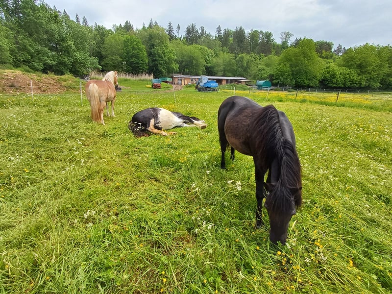 Dino ist ein ganz liebes Pony. Er geht super als Handpferd mit ins Gelände. Wenn ein Erwachsener ihn führt können im Gelände auch super Kinder drauf sitzen. Bodenarbeit macht er gerne, auf dem Platz mit Kindern auf dem Rücken ist (noch) nicvts für ihn. Er bräuchte ein festes Bezugskind, dann wäre er sicherlich auch auf dem Platz gut reitbar. Zur Zeit steht er mit zwei Stuten zusammen, für die Zukunft braucht er aber unbedingt einen Wallach Kumpel! Er steht im Offenstall, kennt aber über Nacht auch die Box. Allergie und Ekzemfrei! Ist zur Zeit etwas zu rund, bräuchte unbedingt mehr Bewegung? Ist im Gelände sicher aber auch schnell unterwegs. Stand im Sommer 4 bis 5 Stunden /Tag auf der Weide. Ansonsten 24/7 Heu Bei weitere Fragen gerne melden! Platz vor Preis! Bei weitere