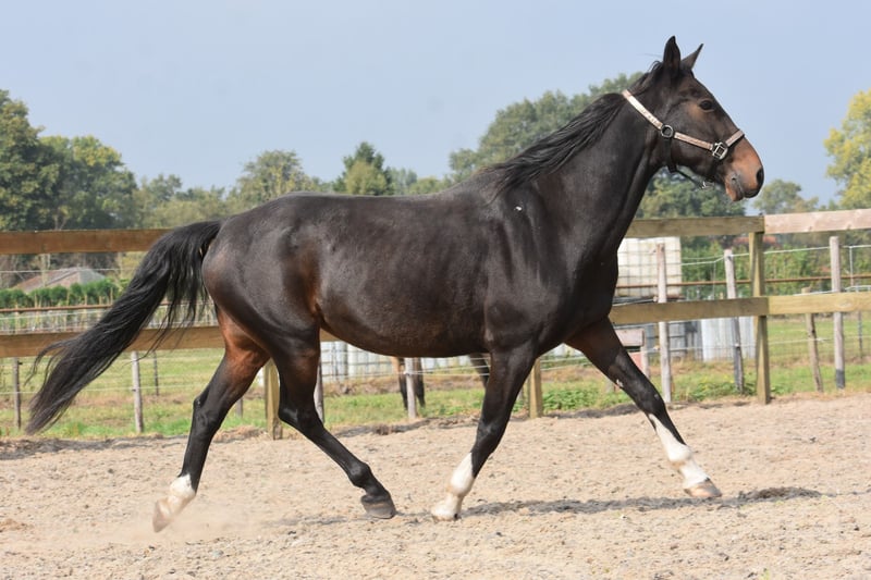 Farmer’s Pride Jester is the pride of his breeder, and he truly has a heart of gold! He stands approximately 1.56 meters tall and was born in 2008. He already has experience in riding schools and care facilities. Jester holds a recent inspection report including blood testing, which approves him for sport. He comes from a full pedigree: Rayo X Perrybridge Touch and Go x Joey. He is suitable for a rider with some experience, but he also offers the seasoned rider plenty of challenge to achieve even more! Ideal for both sport and recreational riding. Price reduced from €3,950 to €2,450, including a branded saddle and saddle pad.