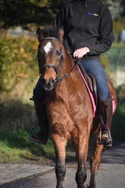 Milstreet Brown Diamond is een ontzetten goudeerlijke, lieve C pony . Hij is geboren 4 mei 2007 en ca 135 m hoog. Het meisje op het filmpje is lang, en toch misstaat ze niet op hem, maar wij achten hem hier braaf genoeg voor een kind. Hij heeft een volle stamboom van Sky King x Sunbeam Vulcan x Wavery Boy. Diamond is totaal vrij van gebreken en een schat van een pony. Superlief hier, zowel in de omgang als in de wei, op straat, in de trailer en in de bak. Een echte , lieve leerpony die ook het bos kent. Prijs: 1950,- incl. zadel en compleet hoofdstel.