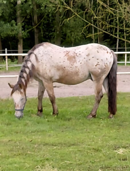 Te koop: een lieve ruin, veelzijdige vrijetijdsgenoot Er staat een charmant paard te koop dat enthousiast maakt door zijn vriendelijke aard en veelzijdigheid. Het betreft een ruin, geboren in 2005, dat gehouden wordt onder een niet-erkende rasnaam. Met zijn unieke tijgerbont vacht is hij een echte blikvanger en trekt hij alle aandacht. Het paard heeft een stokmaat van 154 cm en is uitstekend geschikt voor de recreatie. Of het nu gaat om uitgebreide wandelingen – deze ruin is de ideale partner voor iedereen die op zoek is naar een betrouwbaar en plezierig vrijetijdspaard. Hij is vriendelijk in de omgang en kent de dagelijkse routines. Voor verantwoordelijke ruiters die een trouw en karaktersterk paard zoeken, is hij de perfecte keuze. Hij wordt weggegeven als bijzetpaard, omdat hij achteraan een lichte artrose aan een poot heeft. Ook geschikt als schattig therapiepaard. Bij interesse of voor meer vragen, ben ik graag bereid om te helpen. Maak gerust een afspraak voor een bezichtiging.