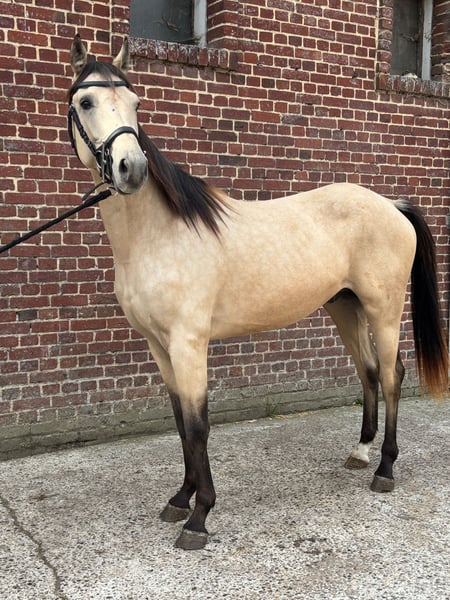 À VENDRE – Hongre OC 2 ANS Origines : Père : Blue Hoy OC (Père Appaloosa X mère OI) Mère : Ultime OC (Père SF par Imprévu de la cour X mère OI) Visible à Épenancourt (80) Très beau modèle – Potentiel à exploiter ! Voici un superbe hongre OC de 2 ans, déjà bien fait dans sa tête, avec un modèle harmonieux, de la finesse et une très belle expression. Robe : Isabelle avec des contrastes marqués, une belle encolure, une ligne de dos tendue et une jolie tête expressive. Taille : 1m57 actuellement, avec encore de la croissance à prévoir (modèle harmonieux et en développement). Manipulé régulièrement : marche en main, licolé, donne bien les pieds, respectueux malgré son statut d'entier. Très bon mental, proche de l’homme sans excès. Son débourrage seras qu'une formalité, il accepte la selle sans souci et se promène avec dehors en longe. Aptitudes & Potentiel 🔹 Saut très aérien et léger : montre de très belles qualités naturelles à l’obstacle en liberté – beaucoup d’amplitude, de rebond et une belle technique. 🔹 Énergie bien dosée : volontaire, souple et réactif, sans précipitation. Idéal pour amateur éclairé, cavalier ou éleveur à la recherche d’un cheval à former pour le sport (CSO, polyvalence, loisir de qualité). Vaccins, vermifuge, maréchal : à jour À venir voir ➡️ Prix : 6500€