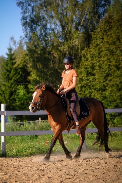 Liiber – obiecujący młody koń o spokojnym usposobieniu i klasycznym szkoleniu Liiber to naturalnie łagodny i spokojny koń, który szybko się uczy, charakteryzuje się ciekawym i uważnym temperamentem. Regularnie uczestniczy w treningach i każdego dnia robi postępy, zawsze kierując się zasadami klasycznego jeździectwa. Liiber to czteroletni koń rasy estońskiej. Ta rasa słynie z wszechstronności i przyjaznego temperamentu. Zazwyczaj cechuje się dobrym zdrowiem i niewielkimi problemami, co jest powszechne w porównaniu z wieloma nowoczesnymi rasami. Koń ma doskonałe kopyta, które wymagają minimalnej pielęgnacji, aby zachować dobrą kondycję. Z natury jest łagodny i spokojny, szybko się uczy, jest ciekawy i uważny. Liiber był szkolony zgodnie z zasadami „akademickiej sztuki jeździectwa” i posiada podstawowy poziom wytrenowania. Potrafi wykonywać przejścia na wszystkie chody, stelling i bending, ma podstawową znajomość shoulder-in. Pracował również na lonży – potrafi ładnie podążać za osobą w różnych pozycjach, w tym na lonży. Chętnie też jeździ na przejażdżki w terenie. Jest w aktywnym treningu i każdego dnia robi postępy. Obsługa jest bezproblemowa, a jego umysł jest rozsądny. Łatwo załadowuje się do przyczepy i dobrze reaguje na podkuwanie. Jest przyzwyczajony do dzieci i nosił je podczas prowadzenia. Zachowuje się wyśmienicie w sytuacjach z dużą ilością ludzi i aktywności wokół niego. Jeździł na różne miejsca i tam także zachowuje się bardzo rozsądnie (np. dobrze radzi sobie na nowej arenie jeździeckiej). Miał wystarczająco czasu, aby dojrzeć i osiągnąć wiek 4 lat, co jest kluczowe dla zapewnienia mu wielu zdrowych lat życia! Trening przeprowadzany był spokojnie, z szacunkiem dla konia, co pozwoliło mu zachować motywację i chęć do współpracy oraz myślenia razem z człowiekiem. Wychował się w dużej stadzie ogierów, co zapewniło mu dobre wychowanie i umiejętność współżycia z innymi końmi i ludźmi. Obecnie mieszka na zewnątrz z dwoma innymi towarzyszami. Bez problemu radzi sobie również w boksie, ale jak każdy koń, ceni sobie życie w pastwisku w towarzystwie przyjaciół. Jego zdrowie jest dobre, na chwilę obecną nie wykazuje tendencji do nadwagi, co jest najczęstszym problemem ras rodzimych. Liiber to młody koń z solidnym fundamentem, gotowy na kontynuację swojej drogi u boku nowego partnera. Jeśli zdecydujesz się na jego zakup przed końcem października, mogę zapewnić bezpłatny transport do Finlandii, Szwecji, Łotwy, Litwy, Polski, Danii, Niemiec, Belgii lub Holandii, ponieważ planuję podróż z Estonii do Europy Zachodniej. Możliwy jest również transport do innych miejsc – w razie potrzeby możemy omówić szczegóły.