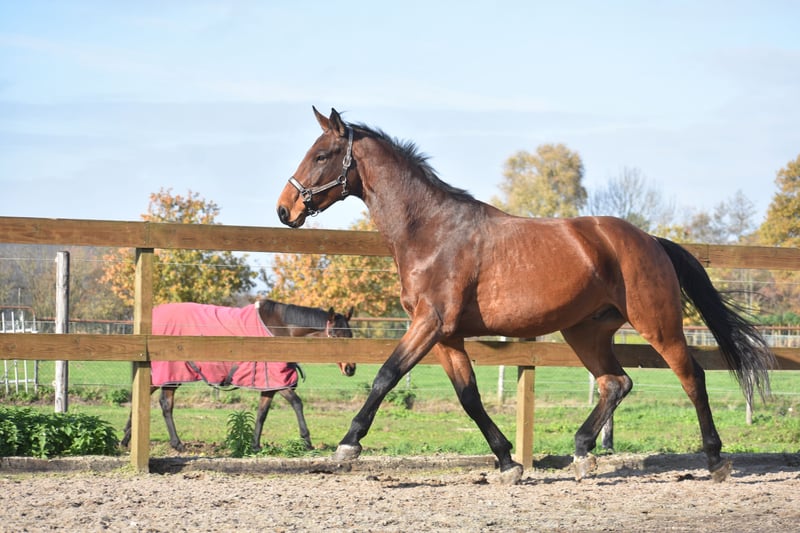 Direkt vom Züchter durften wir ihn zusammen mit seinem Stallgefährten Valesco vd Melane übernehmen. Lernen Sie Voltaire von der Melane kennen, einen imposanten und eleganten 4,5-jährigen Wallach von ca. 1,75 m mit ausgezeichneter Abstammung: Querido VG x Concorde Z x Tresor D 12. Ein Pferd mit viel Zukunft, geeignet für den Sport (Dressur + Springen) sowie für die Freizeit. Voltaire ist wunderschön gebaut und verfügt über viel Ausstrahlung und Elastizität. Er ist freundlich, fröhlich und positiv im Wesen. Unter dem Sattel zeigt er seine natürliche Balance und seinen kooperativen Charakter. Er sucht die Verbindung zum Reiter und ist angenehm zu reiten. Im Umgang ist er stark, aber ein echtes Schmusepferd. Nüchtern, anhänglich und immer offen für viel Aufmerksamkeit. Er ist hier und zuvor gut im Verkehr und am Anhänger ausgebildet. Sehr sozial. Frei von (stall)bedingten Mängeln. Voltaire ist kerngesund und kann sich hervorragend bewegen, mit viel Takt, Balance und Raumgriff. Röntgenologisch und klinisch gut geprüft, sowohl die Beine als auch Rücken und Hals. 9750 € inklusive Marken-Sattel und Komplett-Set mit Trense.