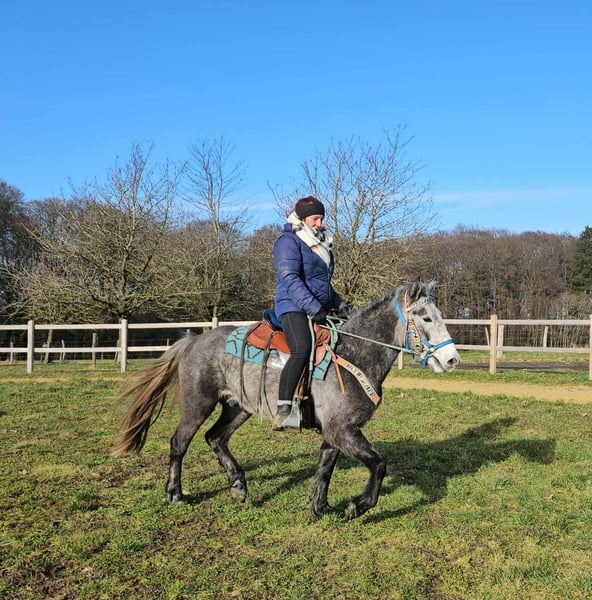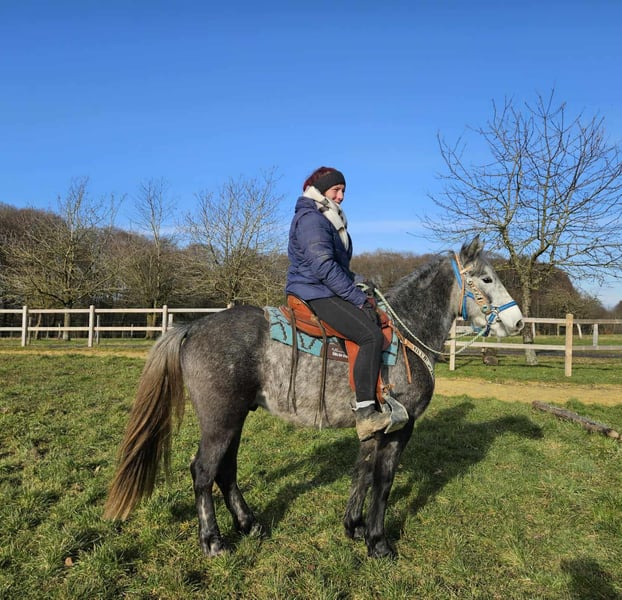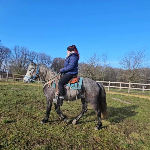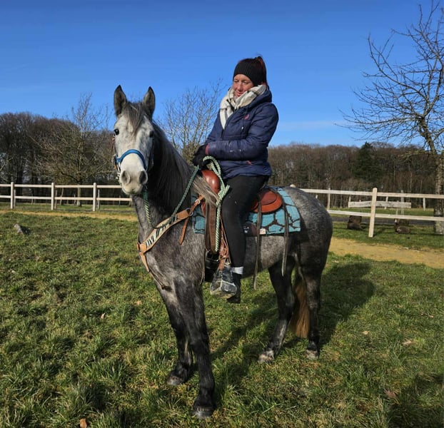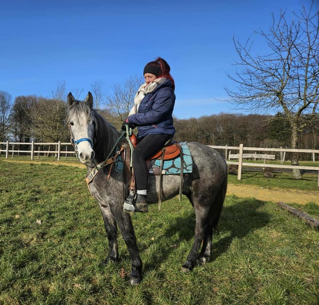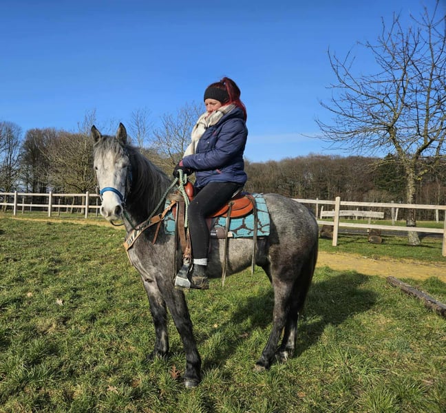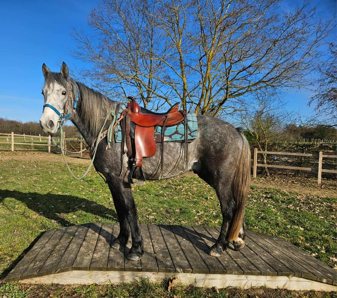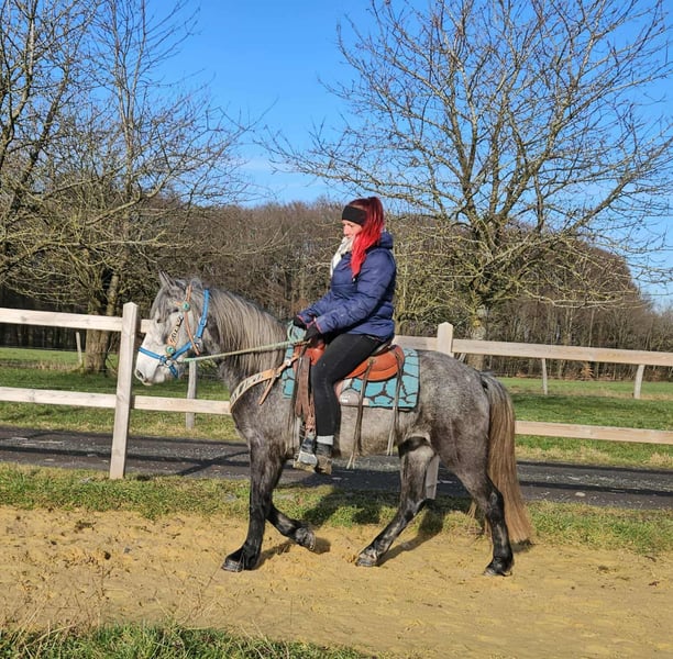 Western-Type Gelding – young, well-behaved & with a great foundation Age: 4 years Height: approx. 14.1 hh (still growing) Price: €4,900 Health certificate: available ✨ Description: This 4-year-old Western-type gelding impresses with his compact, harmonious build and calm demeanor. He is already backed and demonstrates a very good, attentive, and eager-to-learn attitude. For his young age, he has an excellent work ethic. Under saddle, he remains relaxed, makes an effort to do everything correctly, and provides a pleasant riding experience. In daily handling, he is friendly, uncomplicated, and well-mannered. Currently measuring around 14.1 hh, he is still growing – an ideal partner for those wishing to further develop a young horse. A promising young gelding with a solid foundation for leisure riding and further Western training. Suitable for: Riders who enjoy nurturing a young horse. Perfect as a future leisure or Western riding horse. Our horses are regularly: – dewormed – attended to by the farrier – osteopathically checked Farm shop: Western saddles, bridles & accessories Transport and suitable equipment can be organized at a favorable rate upon request. Our services: ✅ 3-month exchange guarantee ✅ Test ride: €35, each additional horse €25 (credited if purchased on the same day) ✅ €100 immediate discount for pickup or transport on the same day ✅ Personal & honest advice Please inquire exclusively by phone: 0171 – 4001968 Available daily from 8 a.m. to 8 p.m. ⚠️ No emails or WhatsApp messages ⚠️ All information without guarantee