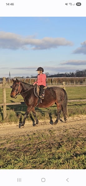 Nous devons malheureusement nous séparer de notre Teddy pour des raisons personnelles. Nous l'avons acheté en décembre dernier à l'âge de 5 ans et l'avons utilisé comme cheval de famille. Il est monté, mais il est encore un peu vert derrière les oreilles. Il est très attaché à une personne en particulier et a besoin d'une référence stable. Il se laisse longe, et lors du travail à la longe, il est très volontaire à apprendre. Il sera confié uniquement à des mains expérimentées. Il se laisse facilement brosser et seller. Il accepte également très bien le maréchal-ferrant. Nous incluons tout l’équipement si désiré (supplément de 1200 EUR). Je liste une partie des accessoires ci-dessous, mais pas tous, car cela deviendrait trop long. Nous l'avons également vermifugé en début d'année et il est entièrement vacciné. Un bilan de santé (AKU) a été effectué et peut être présenté sur demande. Il est castré et se trouve actuellement dans un groupe mixte en paddock extérieur. Un groupe de hongres serait toutefois préférable, car il tente parfois de s’approcher des juments, même s'il est à 100 % castré (il faut faire une prise de sang chez le vétérinaire). Il se trouve actuellement à 88094 Unterteuringen. Je réponds volontiers à vos questions par WhatsApp : +49 176 61899960 Détails : - Sexe : Hongre - Date de naissance : 2019 - Âge : 6 ans - Taille au garrot : environ 1,48 m Accessoires inclus : - Selle sans arçon - pad en daim - Selle western avec tapis en laine - Selle anglaise - Gogue en shearling neuf - Bridon neuf - Bridon âgé d’un an - Bridon - 2 halters - Stirrup pour enfants - Cravache - Longe de longe - Lucky - Rider Pad - Armoire