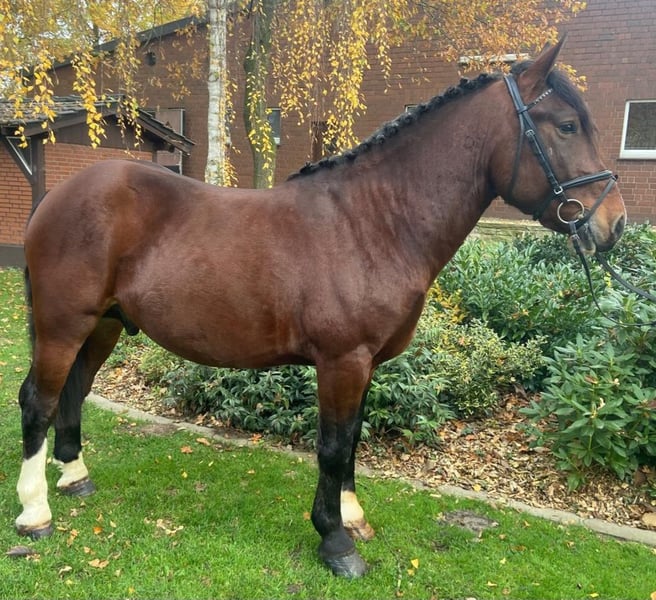 For sale is this 5-year-old bay gelding. He has been ridden recreationally in all three gaits both in the indoor arena and outdoor track, and he is also proven over cross-country terrain. Additionally, he has been lunged. Due to his good temperament, he would also be a suitable option for riding schools. If interested, please feel free to call me (no WhatsApp, please; I may call you back). Phone: 0171 7718174