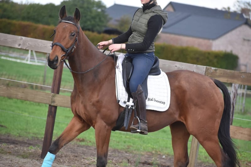 Hier ist Yamas, ein 6-jähriger Warmblut mit Abstammung von Anjaal x Creese. Mit seinen ausdrucksvollen braunen Augen und seinem charmanten Erscheinungsbild gewinnt er sofort Herzen. Er hat eine schöne, mittelgroße Statur mit ca. 1,58 m Größe. Yamas ist ein Pferd mit einem feinen, ausgeglichenen Charakter. Er bleibt in neuen Situationen ruhig und lässt sich nicht leicht aus der Fassung bringen. Zudem ist er nicht übermäßig vorwärts orientiert, was für ein sicheres und vertrauensvolles Gefühl im Sattel sorgt. Er besitzt ein Prüfungszeugnis inklusive Blutprobe, das ihn für den Sport zugelassen hat, mit perfekten Biegproben! Im Umgang, im Verkehr, im Anhänger und in der Herde zeigt Yamas sich gelassen und ist sowohl auf der Weide als auch im Stall sehr unkompliziert. Preis: 5.450 € inklusive Sattel und kompletter Trense