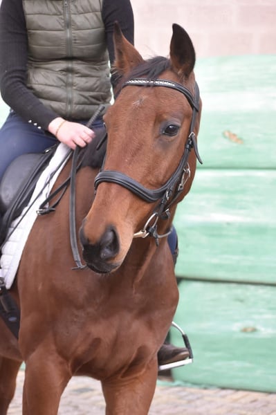 Hier is Yamas, een 6 -jarige ruin met de afstamming Anjaal x Creese. Met zijn sprekende bruine ogen en charmante uitstraling weet hij direct harten te veroveren. Hij heeft een mooi familiemaatje met zijn ca 158 m hoogte. Yamas is een paard met een fijn, nuchter karakter. Hij blijft hier rustig in nieuwe situaties en is niet snel onder de indruk van zijn omgeving. Daarbij is hij niet overdreven voorwaarts, wat zorgt voor een veilig en betrouwbaar gevoel in het zadel. Hij is in bezit van een keuringsrapport inclusief bloedafname, waarbij hij is goedgekeurd voor de sport met perfecte buigproeven! In de omgang, het verkeer, de trailer en in de kudde is Yamas hier nuchter en in de wei en op stal erg makkelijk. € 5450,- Incl. zadel en compleet hoofdstel