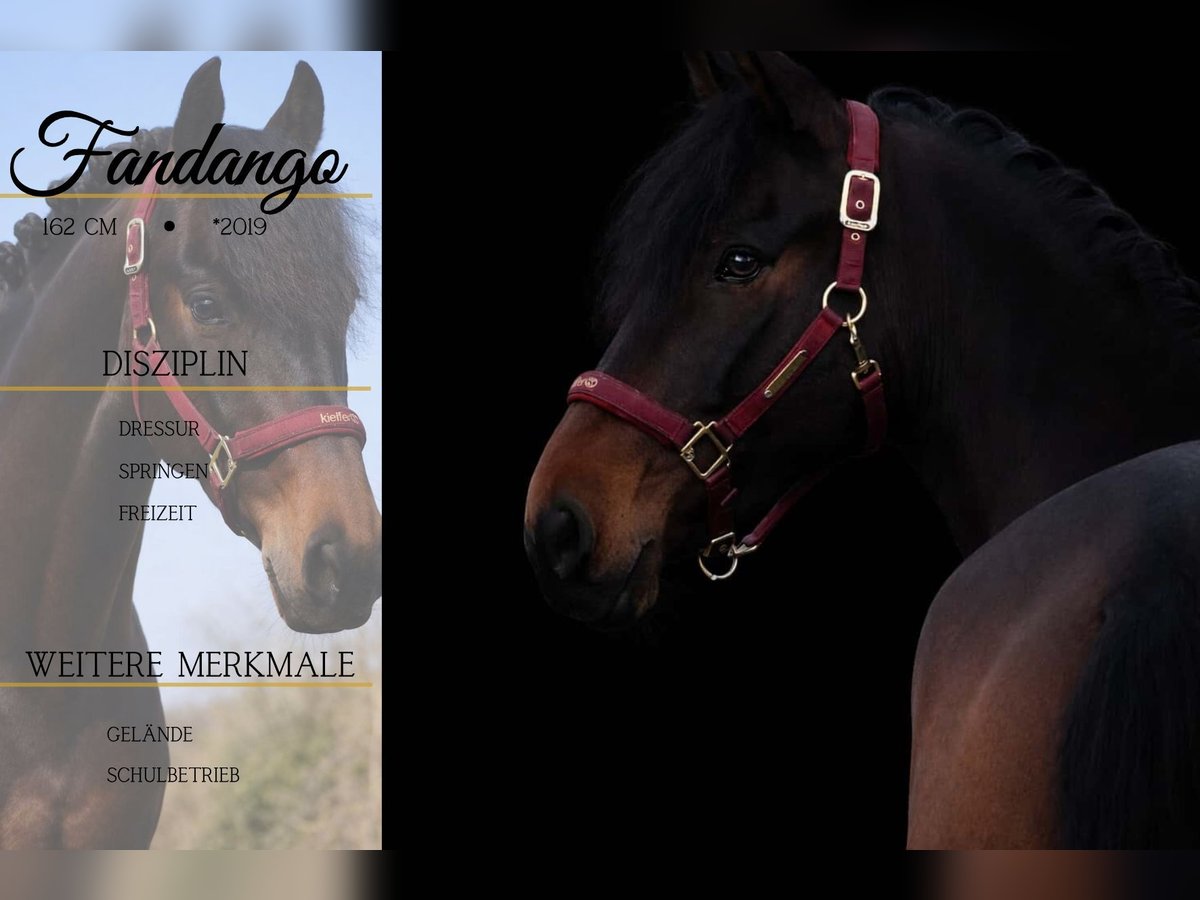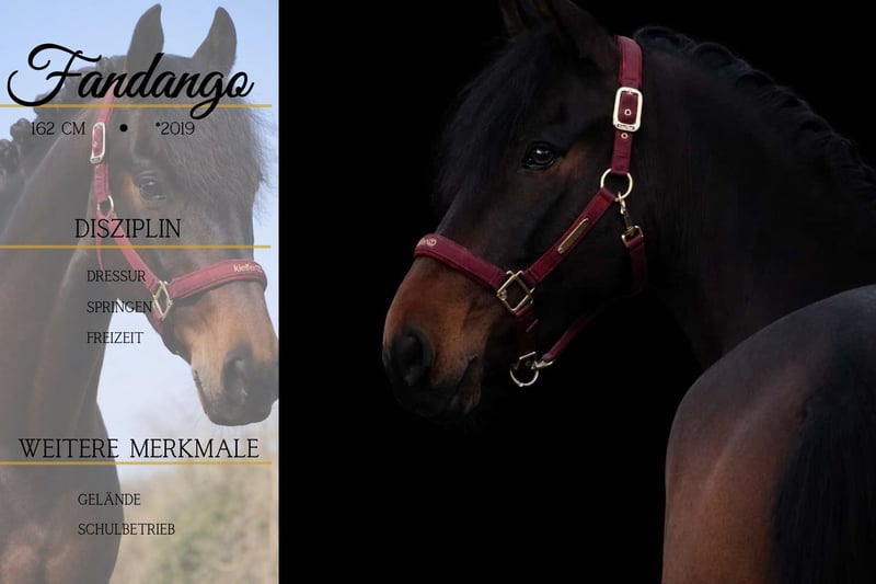 Fandango is a 7-year-old gelding approximately 1.62 meters tall. *Fandango* is an absolute dream horse. Stunningly beautiful, very well-trained, and incredibly relaxed. He moves nicely in the arena, is easy to ride in frame, and sits comfortably. He offers three beautiful gaits. Fandango is unafraid to go alone or in a group, both in the terrain and in unfamiliar surroundings. Calmness training is no problem for him. He can also be ridden by less experienced riders or those with nerves. He is familiar with teenagers and children as well. !!! BE SURE TO WATCH HIS VIDEO !!! He is very sweet, affectionate, and uncomplicated in handling. Pferdehandlung Dederichs – Your Partner for Horse Buying Contact & Availability: Inquiries only by phone at 0173/9792139 Monday – Friday: 09:00 a.m. – 6:00 p.m. Saturday: 09:00 a.m. – 3:00 p.m. Sunday: Closed Follow us on social media! Experience our daily life with the sale horses on Instagram, TikTok & Facebook under Pferdehandlung Dederichs Discount: Receive 5 %– 10 % off when you take your new dream horse immediately Trial Riding & Demonstration: • Trial ride: €40 per horse (up to 2 riders), amount will be credited upon purchase • Holidays: Trial ride €50 • Demonstration by our trainers: €30 per horse (pre-riding, groundwork, etc.) Pre-purchase Examination & Transport: • Many of our horses already have an AKU (pre-purchase exam) • You are welcome to bring your own veterinarian • We can organize an examination for you • We also gladly assist with transport to your new home Other Horses for Sale: We have additional horses for sale in our stable that are not yet listed online. If your dream horse is not yet among them, do not hesitate to contact us. Important Notes: • Approximate height measurements are estimated and not precisely measured • All descriptions are subjective assessments by the seller and do not constitute guaranteed properties