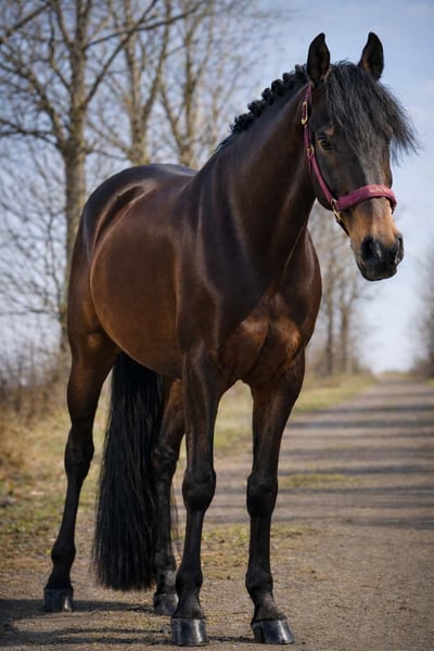 Fandango to 7-letni ogier o wzroście około 1,62 m. *Fandango* to prawdziwy wymarzony koń. Piękny, świetnie jeździ i jest bardzo spokojny. Dobrze radzi sobie w hali, jest łatwy w prowadzeniu, a jego ułożenie i siodłanie są komfortowe. Posiada trzy ładne podstawowe chodzenia (GGA). Fandango jest odważny zarówno podczas jazdy solo, jak i w grupie, zarówno na terenie, jak i w nieznanym otoczeniu. Trening spokojności nie stanowi dla niego problemu. Może być jeżdżony także przez mniej doświadczonych jeźdźców lub osoby z lękami. Zna również młodzież i dzieci. !!! KONIECZNIE OBEJRZYJ JEGO WIDEO !!! W kontaktach bardzo łagodny, przytulaśny i bezproblemowy. Horse Handling Dederichs – Twój partner w zakupie konia Kontakt i dostępność: Prosimy o zapytania wyłącznie telefonicznie pod numer 0173/9792139 Poniedziałek – piątek: 09:00 – 18:00 Sobota: 09:00 – 15:00 Niedziela: dzień wolny Śledź nas w mediach społecznościowych! Zobacz, jak wygląda nasz codzienny życie z końmi na Instagramie, TikToku i Facebooku pod hasłem Horse Handling Dederichs Rabat: Przy natychmiastowym odbiorze swojego wymarzonego konia otrzymujesz rabat od 5 % do 10 %. Próba jazdy i prezentacja: • Próba jazdy: 40 € za konia (max. 2 jeźdźców), kwota zostanie odliczona od ceny zakupu • Święta: jazda próbna 50 € • Prezentacja przez naszych jeźdźców: 30 € za konia (prezentacja, praca na ziemi itp.) Badanie przedzakupowe i transport: • Wiele naszych koni ma już wykonane badanie przedzakupowe (AKU) • Oczywiście można zabrać własnego weterynarza • Chętnie zorganizujemy badanie • Chętnie pomożemy również w transporcie do nowego domu Inne konie na sprzedaż: W naszym stajennym asortymencie znajdują się kolejne konie na sprzedaż, które jeszcze nie są dostępne online. Jeśli Twoje wymarzone konie jeszcze nie ma w ofercie, nie wahaj się z nami skontaktować. Ważne informacje: • Szacunkowe wzrosty są podane orientacyjnie i nie zostały dokładnie zmierzone • Wszystkie opisy są subiektywnymi ocenami sprzedającego i nie stanowią gwarancji cech konia