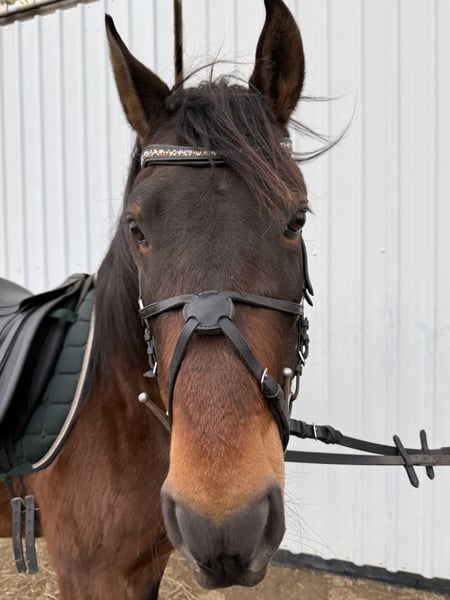 Te koop aangeboden namens eigenaar een 8-jarige Spaanse ruin met mooie basisgangen. Hij gaat graag het buitengebied in en toont daar veel moed, hij leidt zijn groepje vaak aan. Ook in gezelschap van een grondwerker zijn solo-uitritten mogelijk. Als je echter tijd besteedt aan hem en zijn vertrouwen wint, zal alleen op pad gaan zeker geen probleem zijn. Hij is bekend met hoefsmid en dierenarts. Momenteel staat hij in een gemengde kudde en past zich daar goed aan. De kudde graast overdag op de wei en gaat 's avonds de stal in. Als je eenmaal zijn vertrouwen hebt gewonnen, is hij een zeer oplettend, knuffelig en mensgericht paard. Momenteel ontbreekt het ons aan tijd om met hem te werken, daarom hebben we besloten hem te herplaatsen. We zouden graag een ervaren recreatie-ruiter zien die hem rust en vertrouwen kan geven. Een paddock-stalling zou hem ook geen probleem vinden. Bij vragen kunt u gerust contact opnemen. Meer foto's en video's van de ruiter en de paarden worden meegestuurd.