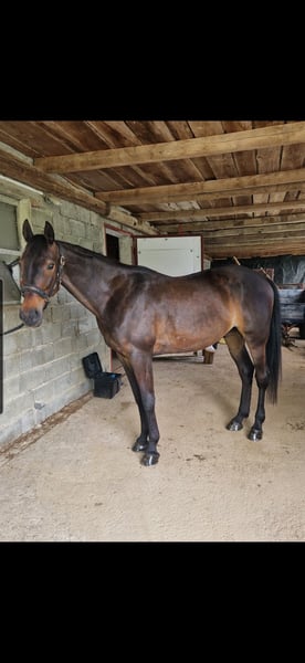 Je vends un hongre de 8 ans, mesurant environ 1,60 m au garrot. Il a principalement été monté en randonnée, où il se montre aussi bien seul qu’en groupe. Il a également été travaillé occasionnellement en dressage dans l’arène. Il aime sauter par-dessus de petits obstacles. En raison de son énergie débordante, il a besoin d’un cavalier qui puisse le travailler régulièrement, car c’est alors un cheval exceptionnel. C’est pourquoi il n’est pas encore adapté aux débutants, mais je pense qu’il pourrait le devenir avec le temps. Il n’a pas été monté depuis 1 à 2 mois par manque de temps.