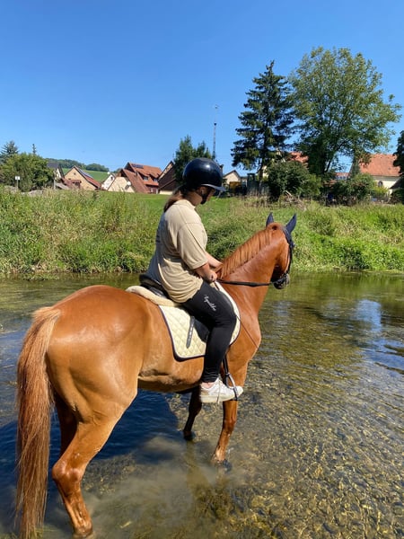 Luca – braver Allrounder sucht neues Zuhause Schweren Herzens verkaufen wir unseren lieben Wallach Luca, geboren 2010 (wird im Oktober 16 Jahre alt), ca. 1,58m. Luca ist ein zuverlässiger und ausgeglichener Partner, sowohl im täglichen Training als auch im Gelände. Er ist absolut brav im Umgang, kennt Kinder, Hunde und landwirtschaftliche Fahrzeuge und zeigt sich stets freundlich und kooperativ. Im Gelände ist er sicher und entspannt unterwegs – alleine wie auch in der Gruppe. Auf dem Turnier wurde Luca erfolgreich auf E-Niveau in der Dressur sowie im Springen vorgestellt. Er ist motiviert bei der Arbeit und möchte seinem Reiter gefallen. Aufgrund einer früheren Sehnenverletzung sollte er jedoch nicht mehr höher im Springsport eingesetzt werden. Für den Freizeitbereich, leichte Dressurarbeit oder kleinere Springaufgaben ist er weiterhin gut geeignet. Wir wünschen uns für Luca ein liebevolles Zuhause, in dem er weiter gefördert und geschätzt wird. Der Verkauf erfolgt ausschließlich, weil meine Tochter sich aufgrund der Schule zeitlich nicht mehr ausreichend um drei Pferde kümmern kann – es fällt uns daher nicht leicht. Bei ernsthaftem Interesse freuen wir uns über eine Nachricht und ein persönliches Kennenlernen.
