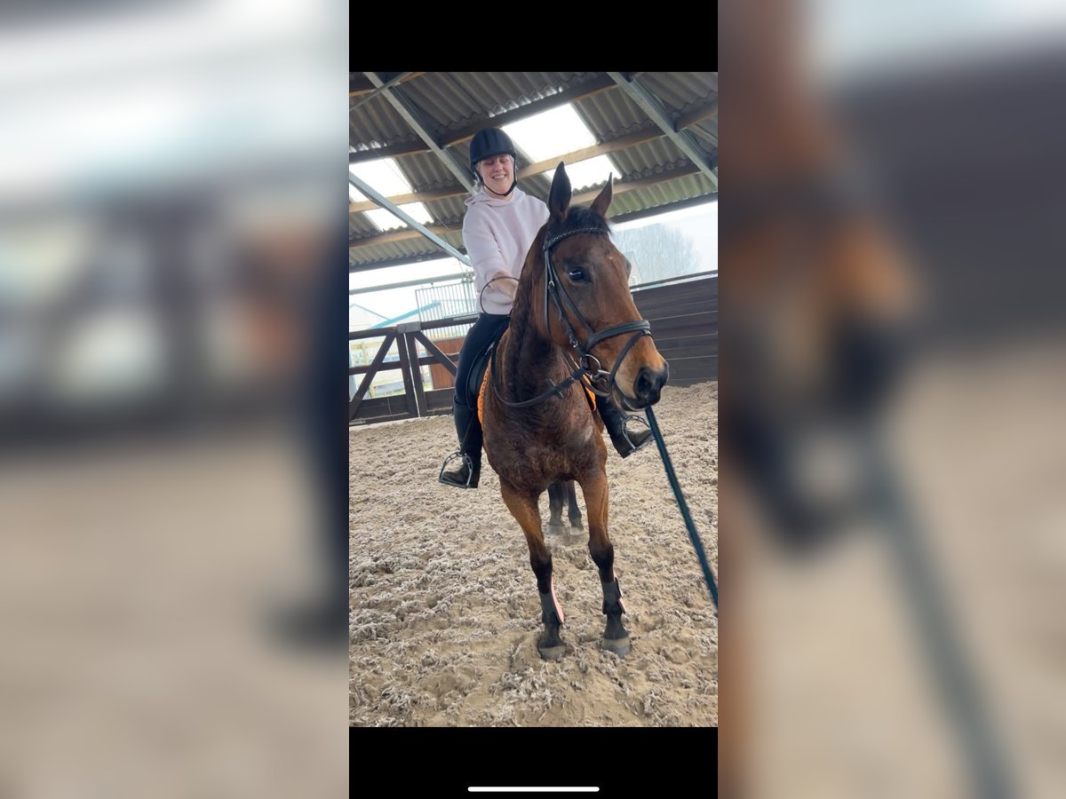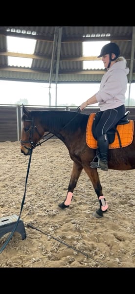 Ontmoet Sarah, een prachtige merrie van 12 jaar oud met een stokmaat van ongeveer 1.60 m. Ze heeft de afstamming Flemensfirth x Ability To Burn en beschikt over een mooie rijpaardbouw met een fijn, vriendelijk hoofdje. Toen Sarah bij ons kwam was ze niet bang, maar wel wat voorzichtig richting mensen. We merkten al snel dat ze gewoon wat tijd nodig had om vertrouwen te krijgen. Inmiddels is ze helemaal opengebloeid en laat ze haar lieve karakter zien. In de stal en op de poetsplaats staat ze vaak met haar oortjes vrolijk naar voren, nieuwsgierig kijkend wat je aan het doen bent. Ze geniet van aandacht en een knuffel slaat ze zeker niet af. We zijn inmiddels ook weer op haar gestapt en dat pakt ze super goed op, als of ze nooit heeft stilgestaan. Ze is fijn in de omgang en pakt het werk weer netjes op. Sarah is een leuke merrie voor iemand die met haar verder aan de slag wil en samen een band wil opbouwen. Wie geeft deze lieve merrie haar nieuwe thuis? Prijs: € 3950,- Inclusief merkzadel