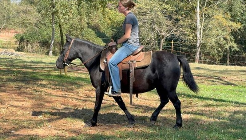 "AVAILABLE ON ONLINE HORSE AUCTION AT www DOT MagicHorseAuction DOT com BIDDING OPEN NOW thru TUESDAY | December 23TH! - BUY IT NOW AVAILABLE! *Final price will be determined on auction site* CONSIGNOR CONTACT INFO: Southern Performance Horses 706-963-9251 LOCATION: Carnesville, GA "Raven is a 12.3 hand 13 year old pony mare that is built like mom or dad’s big horse. Raven has excellent Barn manners cross ties perfectly is easy to groom and tack up. Raven has perfect hooves and clean legs and is sound in every way. Raven absolutely loves snack time. It is one of her favorite times of the day. This size Pony is extremely hard to find, especially when they’re built like her. Raven is broke to ride and has been on lots of trail rides, wagon trains etc. Raven is easy to catch and is fine in the pasture with other horses or alone. Raven is up-to-date on vaccines, deworming, farrier care and coggins. Raven will ride out on a trail ride. She is also fine to Pony from another Horse if you have an inexperienced kid. I would not say she is for your three year-old to throw and turn them loose, but in the round pen or on the lunge line, she would be perfect to learn on, but she is very safe and steady. Raven could go any directions if you wanted a little rodeo play day Pony or a Hunter Jumper she has super nice movement and is very floaty she could go any direction desired. Raven would make an absolute awesome trail Pony and is even large enough for an adult rider. Girl in the videos is 5’9 and she is plenty stout to carry that type of rider. Raven is excellent barefoot. She will go right down the gravel road without hesitation. Raven was broke by the Amish used by the Amish and was also a broodmare she is an excellent mother. Raven is definitely more whoa than go and is not quick at all. Located in Carnesville, Georgia Delivery is available for a fee pick up is always welcome We are also willing to help find shipping anywhere needed.