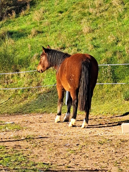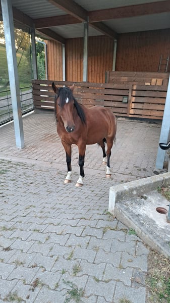 Hübsche kleine Stute aus 04/2023. Barocker Typ, kennt bereits Gelände als Handpferd und von langen Spaziergängen. Sie ist dabei unerschrocken und brav. Mit Bodenarbeit wurde ebenfalls bereits begonnen. Sie steht im Offenstall in gemischter Herde und ist gut sozialisiert. Die Stute ist gesund, geimpft, wird regelmäßig entwurmt und wird regelmäßig dem Hufschmied vorgestellt. Das Stm. ist zur Zeit ca. 1,40m.