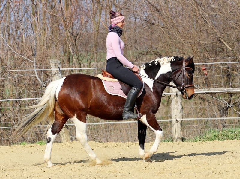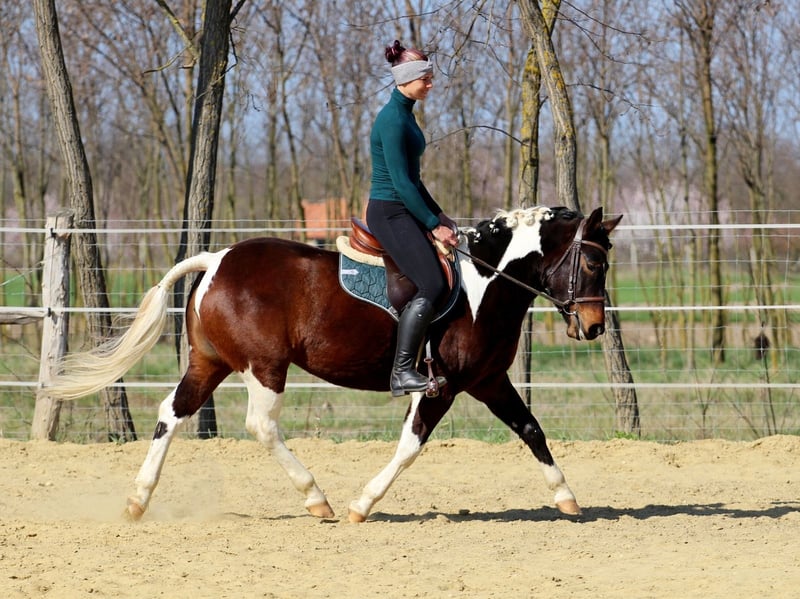 Ribizli ist eine dreijährige Stute mit ganz besonderem Charme und hervorragendem Charakter. Sie überzeugt durch ihre Aufmerksamkeit, ihre Menschenbezogenheit und ihr ausgeglichenes Wesen. Aufgewachsen in der Herde mit gleichaltrigen Pferden ist sie bestens sozialisiert und kennt mittlerweile auch die Boxenhaltung. Ribizli ist eine sportliche motivierte Stute mit guten Bewegungen und dem Willen immer zu gefallen. Sie reagiert fein und unmittelbar auf Hilfen und arbeitet motiviert und lernfreudig mit. Die Stute bleibt aber stets klar im Kopf und absolut brav. Durch ihre Veranlagung - ihre Mutter ist ein Paint-Horse - würde sie sich sehr gut für den Westernbereich eignen, ist jedoch vielseitig einsetzbar. Aktuell misst sie ca. 150 cm Stockmaß und befindet sich noch im Wachstum. Ribizli geht momentan barhuf und zeigt dabei keinerlei Probleme, sie kennt aber auch den Hufschmied. Trotz ihres jungen Alters zeigt sie sich bereits sehr zuverlässig und vermittelt ihrem Reiter ein sicheres Gefühl – ein Pferd mit großem Potenzial und Herz Ribizli kann natürlich gerne jederzeit nach Vereinbarung bei uns auf der Horseofcourse-Farm kennengelernt und probegeritten werden. Videos auf Instagram oder Tik-Tok oder natürlich auch gern per Whatsapp. Die Pferde und wir freuen uns auf euch! Ein Transport kann gerne bei Bedarf von uns organisiert werden. Horseofcourse-Farm Dora & Rita Szent Imre Straße 36 9099 Per, Ungarn