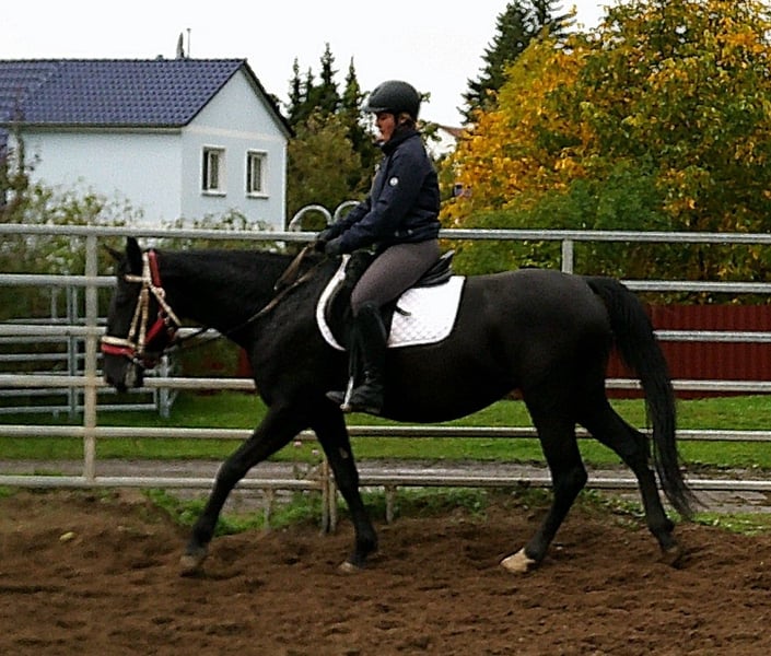 Schicke Rappstute,brav und unkompliziert im Umgang. Gut geritten in allen Gangarten auf dem Platz und in der Halle. Optimales Pferd für Gelände,Wanderreiten,Schulbetrieb. Weiterhin ist Martha einspännig gefahren. 5 Jahre, 155cm Bei Interesse bitte anrufen, keine Mail! Für eventuell auftretende Fehler in der Beschreibung gilt keine Gewähr! Tel.: 0173-3843407 Da es sich um ein lebendes Tier handelt, sind dies subjektive Eindrücke des Anbieters und keine zugesicherten Eigenschaften des Tieres! Ständig schöne Fahr-u.Freizeitpferdesowie neue Kutschen verschiedener Modelle preiswert im Angebot. Anschrift Stall: 99628 Buttstädt, Oberwendenstraße 39