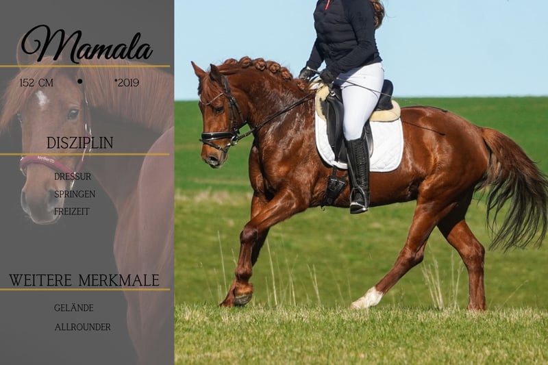 Mamala ist eine 7 Jährige Stute ca. 1,52 cm der Rasse Karakachan mit vollem Papier *Mamala* ist eine wunderschöne Allrounderin für groß und klein. Vermittelt ein tolles und sicheres Reitgefühl, auch für ängstliche Reiter. Sie geht schön in Dressur und bringt gute GGA mit. Geht alleine und in der Gruppe super ins Gelände, liebt das Wasser. Fremde Umgebungen, Fahrzeuge, Lärm, Planen und das Gelassenheitstraining stellen für die tolle kein Problem da. Sie macht auch einen netten Sprung. Sie deckt super ab, Reiterin auf dem Video ist 176cm. Ein absolutes Spaßpony, wo man sich sofort wohl drauf fühlt !!! SCHAUEN SIE SICH UNBEDINGT IHR VIDEO AN !!! Die Chance auf so ein Pony sollte man nicht verpassen. Ein aktuelles Video finden Sie hier in der Anzeige oder unter folgendem Link: https://www.youtube.com/watch?v=BdcTEY3akd4 Pferdehandlung Dederichs – Ihr Partner für den Pferdekauf Kontakt & Erreichbarkeit: Anfragen bitte ausschließlich telefonisch unter 0173/9792139 Montag – Freitag: 09:00 – 18:00 Uhr Samstag: 09:00 – 15:00 Uhr Sonntag: Ruhetag Folgen Sie uns auf Social Media! Erleben Sie unseren Alltag mit den Verkaufspferden auf Instagram, TikTok & Facebook unter Pferdehandlung Dederichs Rabatt: Bei sofortiger Mitnahme Ihres neuen Traumpferdes erhalten Sie zwischen 5 %– 10 % Rabatt Probereiten & Vorführen: • Probereiten: 40 € pro Pferd (max. 2 Reiter), Betrag wird beim Kauf angerechnet • Feiertage: Proberitt 50 € • Vorführung durch unsere Bereiter: 30 € pro Pferd (Vorreiten, Bodenarbeit etc.) Ankaufsuntersuchung & Transport: • Viele unserer Pferde besitzen bereits eine AKU • Sie können selbstverständlich Ihren eigenen Tierarzt mitbringen • Gerne organisieren wir eine Untersuchung • Wir unterstützen Sie auch gerne beim Transport ins neue Zuhause Weitere Verkaufspferde: In unserem Stall stehen weitere Verkaufspferde, die noch nicht online sind. Falls Ihr Traumpferd noch nicht dabei ist, zögern Sie nicht, uns zu kontaktieren. Wichtige Hinweise: • Stockmaß-Angaben sind geschätzt und nicht exakt nachgemessen • Alle Beschreibungen sind subjektive Einschätzungen des Verkäufers und keine zugesicherten Eigenschaften