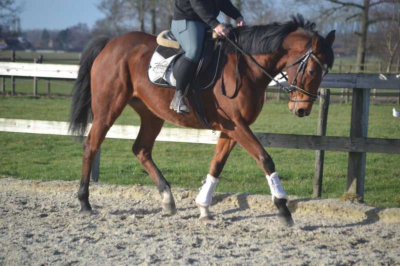 Nice all-round mare, 7 years old and 16.1 hands high. She is well-behaved and patient in the grooming area, easy to ride, and enjoys jumping. She is social with her peers and free of any vices. Additionally, she is calm with the farrier and the veterinarian. Location: Wuustwezel For more information or a video, please send a WhatsApp message to +31 645719488.