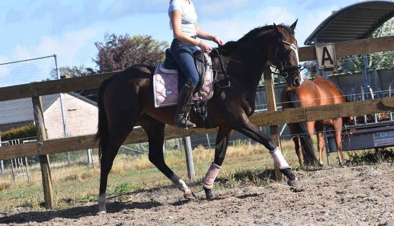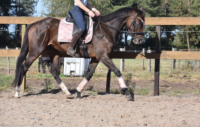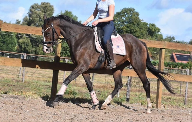 Paddy is a 9-year-old mare standing approximately 1.62 meters (16.1 hh). She descends from Leading Light x Caoba by Hernando (FR). She has an elegant yet solid build, with beautiful long legs, and is very pleasant to ride. Due to circumstances, we were unable to ride her for a long period, but she was easy to get back into work and is very well-behaved. She has a soft mouth and responds nicely to the aids. A heavy hand is absolutely not necessary with her; she is neither overly sensitive nor spooky. Paddy is traffic-safe, healthy, and free of any vices. She is also very interesting for breeding purposes! Additionally, she is extremely social within the herd, both in her interactions and in the stable. Recently treated by the dentist, with a recent dental report available. Price €6,450 including branded saddle and saddle pad.