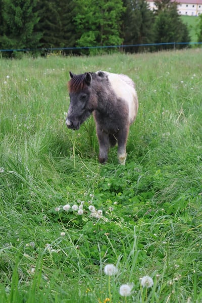 Verkaufe jungen Hengst – Vielversprechendes Kinderreitpony in Entwicklung! Zum Verkauf steht ein entzückender junger Hengst, geboren im Jahr 2024, mit einem aktuellen Stockmaß von ca. 110 cm. Er stammt aus einer vielseitigen, robusten Ponyfamilie und zeigt jetzt schon das liebe, ausgeglichene Wesen seiner Mutter und Schwester – beide sind unerschrocken und zuverlässig im Umgang. Besonderheiten: • Hengst, geboren 2024, noch im Wachstum • Stockmaß ca. 110 cm, ideal für Kinder oder kleine Reiter*innen • Porzellan Schimmel – besondere Farbentwicklung möglich • Freundlich, brav im Umgang und sehr menschenbezogen, beherrscht das Fohlen ABC • Zeigt sich neugierig und gelassen – ein echtes Kinderpony in Aussicht • Kann bei Bedarf eingestellt bleiben und später eingefahren werden Dieser junge Hengst ist gesund, aufgeweckt und bringt alles mit, um zu einem verlässlichen Partner für Kinder und Freizeit zu werden.