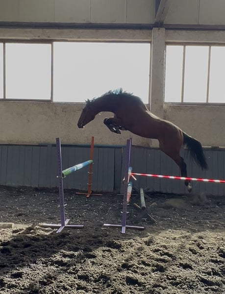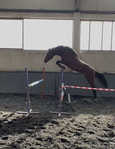 Outstanding Stallion Available for Sale! Discover the potential of this impressive 2023-born stallion, a true gem for any equestrian enthusiast. Standing at 166 cm, this brown beauty combines elegance with athleticism, making it an excellent choice for jumping disciplines. With a versatile pedigree from other breeds, he exhibits a natural talent for jumping and a promising future in the sport. His confident demeanor and impressive stature make him a standout on any showground or training facility. Don't miss the opportunity to own this exceptional young stallion, ready to develop into a top competitor or a valuable addition to your breeding program. Contact us today to learn more!