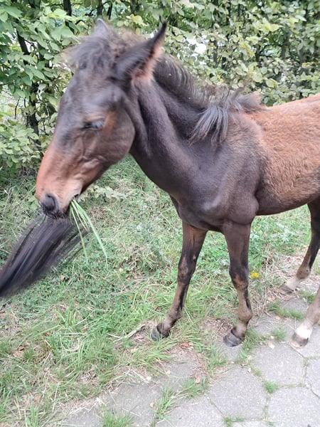Mother is a Karakachan Horse, D-pony. She was found to be pregnant when we bought her. Father is said to be 155 cm tall. Lucky is incredibly sweet in handling. He comes to you, allows you to calmly put on his halter, and walks along with you. He is ready to go to a nice new home where he can be well worked with and where someone can give him all the love that we would have wanted to give him. But since we did not expect a foal, we would like to have him pampered by someone else.
