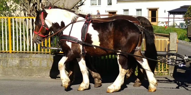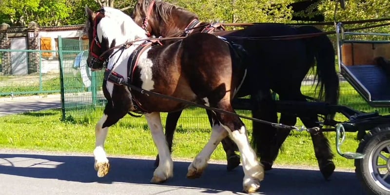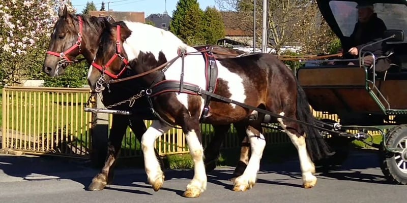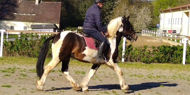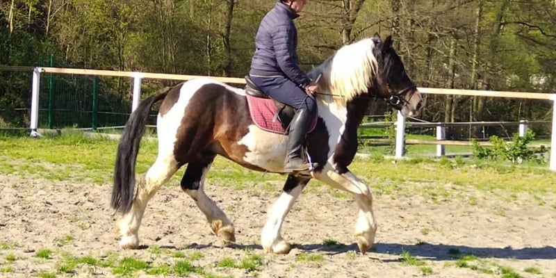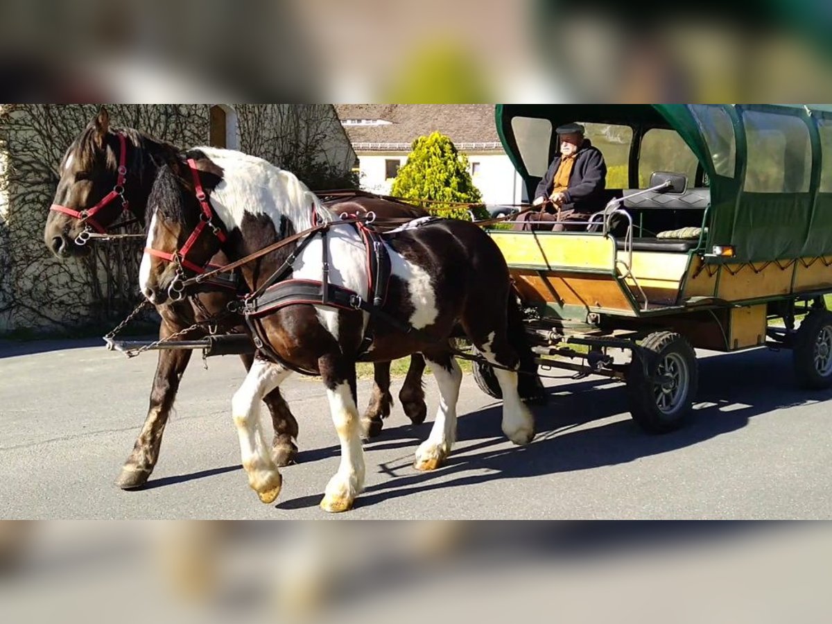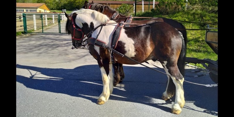 Kaprys – Hongre de trait norvégien, 6 ans, actuellement 1,57 m, robe pie baie foncée, très beau marquage, construction correcte, parfaitement monté et utilisé en loisir, sûr et fiable en circulation routière, taille idéale comme cheval de loisir ou pour attelage, ferré et chargé sans problème, vacciné et vermifugé, état de santé et de soins très bon, en excellent état de soins et d'alimentation. 5500,00 euros 0171/3132074