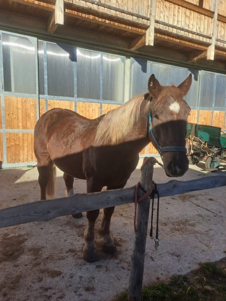 Beautiful, 5-year-old, tall, elegant, double-maned, dark chestnut cold-blooded gelding with full papers, approx. 170 cm, driven in 1 and 2 harnesses, a very calm and relaxed gelding, roadworthy, easy to load, safe to shoe, etc. Further photos and videos can be sent, delivery possible. More information by phone or whatsapp.