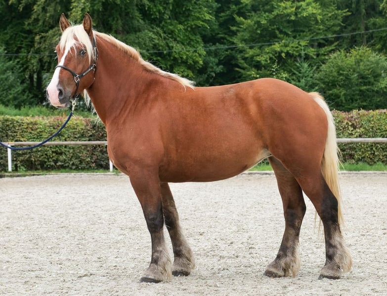 Name: Mirabell Breed: Coldblood (Trait Comtois) Gender: Mare Date of Birth: April 18, 2022 Age: 3 years Height: 1.60 m (approx. 16.1 hh) Color: Light Brown Pedigree: Available Temperament: Friendly and people-oriented, courageous, patient, curious, intelligent, brave, eager to learn Training/ suitability: ridden, leisure riding, dressage, trail riding, cross-country horse Cross-country experience: fearless, attentive, steady nerves, confident both alone and in a group Health: dewormed, vaccinated, barefoot, eczema-free, teeth checked, osteopathically treated Stabling: box stall, open stable Special features: farrier and loading-friendly, herd-compatible, trail riding horse, weight carrier Please note that the above characteristics are based on our personal assessment and do not constitute guaranteed traits. Price: €6,900 (gross price) Have we piqued your interest? To give you a better impression of Mirabell, we are happy to send you a riding video. Of course, we are available for a detailed description of the horse, personal consultation, and to answer all your questions by phone. Feel free to contact us anytime via WhatsApp or call us at: +49 151 19487595 Our phone hours are daily from 7:00 AM to 1:30 PM and again from 8:00 PM onwards. We look forward to hearing from you! A clinical or radiological pre-purchase examination can be arranged with your veterinarian. Mirabell can be safely and comfortably delivered to your new home. We handle all preparations and transportation to ensure your new horse arrives stress-free, well cared for, insured, and in good health. Currently, we offer a carefully selected range of horses for sale. With us, you are sure to find your dream horse. Visit us also on our website: www.marvinsroyalhorses.de. Dear customers, we would be happy to introduce you to our horses and offer grooming, tacking, lunging, ground work, and trial riding sessions in the riding hall, on the arena, or in the field to help you get to know your new family member better. This costs €40 per horse, with each additional horse €30, and will be refunded upon purchase. Our address: Ferdinand Grube 50 53577 Neustadt-Wied Google Maps: marvinsroyalhorses