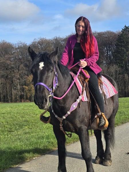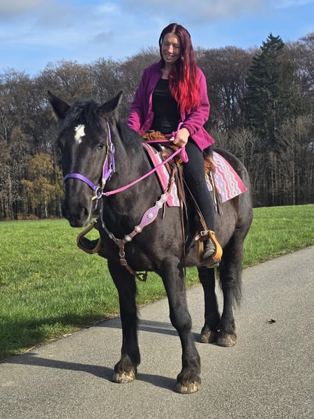 Rapp-stute – mensgericht en gezinsvriendelijk Leeftijd: 4 jaar Schofthoogte: ca. 1,53 m Prijs: € 6.300 AKU aanwezig Zij is: – braaf en betrouwbaar in omgang en onder het zadel – zeer mensgericht en knuffelig – ondanks haar jonge leeftijd al evenwichtig en ontspannen – een geweldig paard voor het hele gezin – met haar vriendelijke aard ook interessant voor therapeutisch rijden Perfect voor: Gezinnen, recreatieruiters of instellingen die op zoek zijn naar een vriendelijk en coöperatief paard dat plezier heeft in samen zijn. Onze paarden: – regelmatig ontwormd – verzorgd door hoefsmid en osteopaat Boerderijwinkel: Westernzadels, hoofdstel, accessoires Transport en accessoires naar wens voordelig geregeld Onze service: ✅ 3 maanden ruilgarantie ✅ Proefrit: € 35, elk extra paard € 25 (bij aankoop op dezelfde dag verrekend) ✅💰 Kortingsmogelijkheden bij directe overdracht of transport op dezelfde dag: • Prijsklasse 1: € 100 korting • Prijsklasse 2 (vanaf € 5.000): € 250 korting ✅ Persoonlijk en eerlijk advies Voor vragen graag telefonisch: 0171 – 4001968 Dagelijks bereikbaar van 8.00 tot 20.00 uur ⚠️ Geen e-mail of WhatsApp ⚠️ Alle gegevens zonder garantie