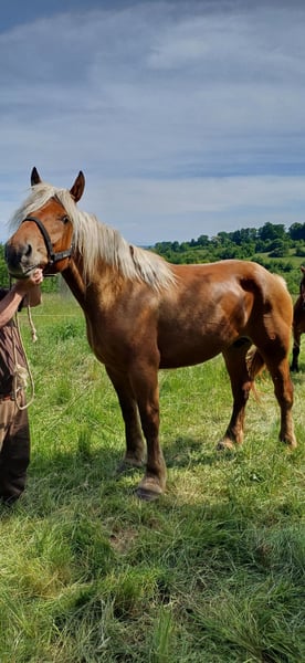 yegua de raza comtois presumiblemente preñada. muy buen carácter.