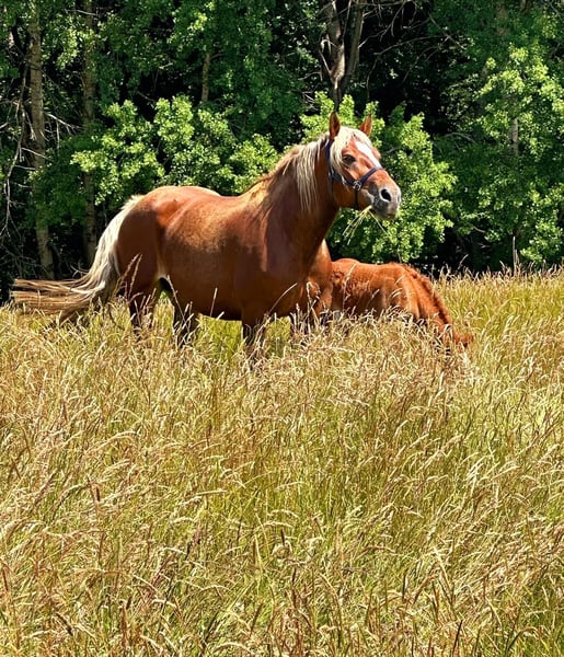 Beautiful Comtois mare with colt seeks a loving home We are looking for a suitable, loving home for this wonderful Comtois mare. She is 6 years old, approximately 1.60 m tall, and has given birth to two healthy foals so far. Currently, she is with her beautiful colt at her side and is ideally to be rehomed together with him. The mare is still unbroken but shows a friendly demeanor. With the necessary calmness, patience, and understanding of horses, she offers a great foundation for further training. Alternatively, she is certainly also interesting for breeders who have a good eye for type and build. Both animals have the necessary paperwork: • The mare has an equine passport and a complete pedigree. • There is a covering certificate for the colt. If you are looking for a special horse pair – whether for breeding or further training – we would be very happy to hear from you!