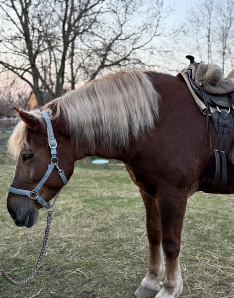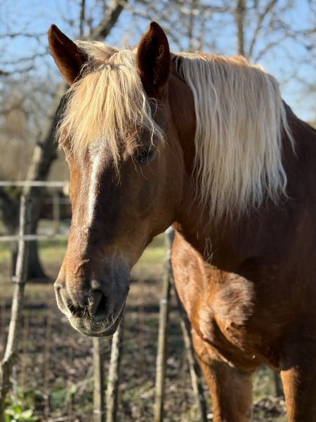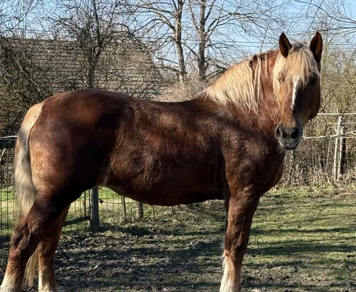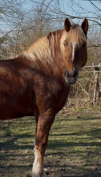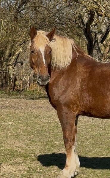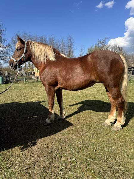 Zum Verkauf steht eine sehr liebe 7-jährige Kaltblut-Fuchsstute. Sie hat ein gutes Stockmaß von 1,68 m, eignet sich daher auch als Gewichtsträger, aber auch von Kindern lässt sie sich gut reiten. Sie ist brav im Umgang, herdenverträglich, schmiede- und verladefromm. Amanda wurde auch gefahren und freizeitmäßig auf dem Platz sowie im Gelände geritten. Wir sind alleine und auch in der Gruppe ausreiten. Bodenarbeit, longieren in 3 GGA macht sie brav. Sie ist gemütlich, aber nicht faul im Gelände, auch angenehm flott, wenn man möchte. Kein Bocken, Steigen oder andere Unarten. Videos kann ich gerne per WhatsApp schicken.