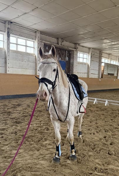 Verkaufe hier diesen großen Riesen Fliegen Schimmel von einem stockmaß 1,64. Er war mal ein Rennpferd was jetzt in Rente gegangen ist. Er ist jetzt 11 Jahre jung. Er wird als bedingten Reitbaren beisteller abgegeben. Er hat vorne Eisen drauf und hinten ist er Barhuf.Er Hat ein kleines Handicap. Er liebt es geputzt zu werden und ist auch sehr anhänglich.Er liebt es Boden arbeit zumachen, er kennt Halle und Reitplatz. Im Gelände liebt er es spazieren zu gehen ist dabei unerschrocken. Er kennt Hufschmied ist regelmäßig entwurmt und geimpft Zähne wurden auch erst gemacht. Er hatte schon zweimal Osteopathin da was ihm wirklich gut tat. Andere Erkrankungen sind nicht bekannt. Er ist Herden verträglich und ran niedrig. Er geht ohne Probleme auf den Anhänger. Wenn ihr ihn kennen lernen möchtet dann meldet euch gerne. Für ihn würde ich mir wünschen das er jemanden für sich gewinnt wo er einfach nur Pferd sein darf wo er geliebt wird und andere Pferde Kumpels hat. Bei weiteren Fragen gerne schreiben.