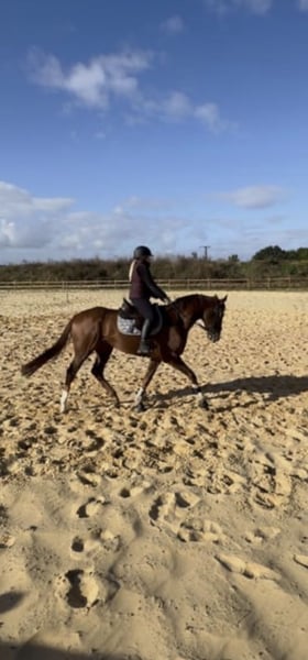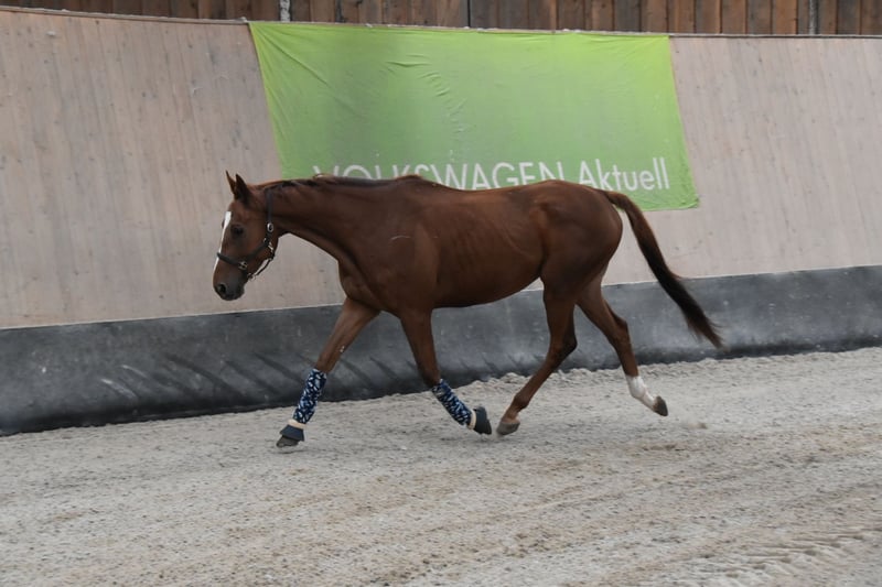 **Verkaufsanzeige: Traumhafter Vollblut-Wallach zu verkaufen** Wir suchen ein neues Zuhause für unseren wunderschönen Vollblut-Wallach! **Merkmale:** - **Rasse:** Vollblut - **Geschlecht:** Wallach - **Geburtsjahr:** 2021 - **Farbe:** Fuchs - **Stockmaß:** 164 cm - **Eignung:** Dressur Dieser charmante Wallach überzeugt nicht nur durch seine ansprechende Farbe und sein elegantes Erscheinungsbild, sondern auch durch sein freundliches Wesen und seine Lernbereitschaft. Er ist bestens geeignet für ambitionierte Reiter, die Freude an der Dressur haben und gemeinsam mit ihm weiter wachsen möchten. Er hat bereits erste Erfahrungen in der Dressur gesammelt und zeigt großes Potenzial für weitere Fortschritte. Mit seinem ausgeglichenen Temperament und seiner guten Rittigkeit ist er sowohl für den Freizeit- als auch für den kleinen Turniersport geeignet. Der Wallach ist brav im Umgang, gut erzogen und kennt die Grundlagen der Bodenarbeit. Er ist geimpft, entwurmt und besitzt einen aktuellen Gesundheitscheck. Bei Interesse oder weiteren Fragen freuen wir uns über Ihre Nachricht! Besuchen Sie uns gerne, um diesen tollen Wallach persönlich kennenzulernen. Wir freuen uns auf Ihre Anfrage!