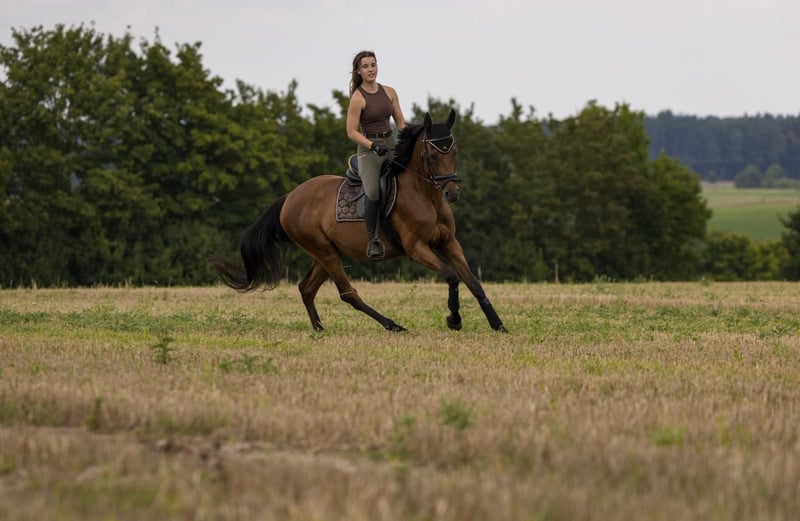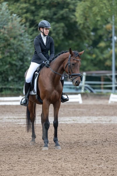 Der Wallach ist in der E-Dressur platziert, kennt Turnieratmosphäre und war bereits auf mehreren Orientierungsritten erfolgreich unterwegs. Im Gelände zeigt er sich brav, zuverlässig und auch in der Gruppe sehr angenehm zu reiten.
