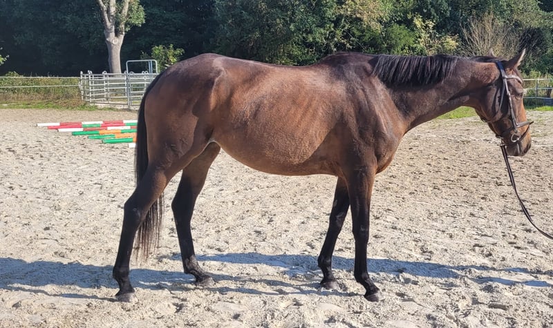 Elegant Thoroughbred mare for sale – ideal for endurance riding. Lassi impresses with her expressive and ground-covering gaits. She is lunged and is already accustomed to rider’s weight. She appears very motivated and eager to please her handler. Due to her training level, she is not suitable for beginners. Lassi is looking for a calm owner who will introduce her to the world of riding and help her become a confident riding horse. Please feel free to contact me for more information or if you have any questions.