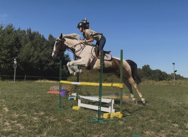 Zum Verkauf steht eine Wielkopolska-Stute, 5,5 Jahre alt. Die Stute bewegt sich in allen drei Grundgangarten und springt einzelne Hindernisse. Sie ist noch in der Ausbildung, hat Potenzial und eignet sich für L/P im Springsport bei entsprechendem Training. Aufgrund fehlender geeigneter Bodenverhältnisse und einer Reithalle springt sie nur gelegentlich; bei mir ist sie hauptsächlich im Gelände unterwegs. Sie ist elektrisch, aber unter Kontrolle, trägt kein Gewicht und geht im Gelände an erster Stelle oder in der Gruppe, wobei sie sich in beiden Formen gut zurechtfindet. Sie ist nicht für kleine Kinder oder Anfänger geeignet. Auf dem Reitplatz ist sie eher anspruchsvoll, eignet sich aber gut für Freizeitreiter, die in den drei Grundgangarten reiten. Wie bei einer Stute üblich, hat sie bessere und schlechtere Tage, ist aber eine sanfte Dame. Im Herdenverband steht sie am Ende der Hierarchie. Bei uns kommt sie mit Wallachen besser zurecht, da die Stuten hier zu dominant sind. Sie hat zwei Fohlen geboren, ist eine vorbildliche Mutter und hatte eine problemlose Geburt. Der Preis beträgt 28.000 PLN, Verhandlungen sind möglich.
