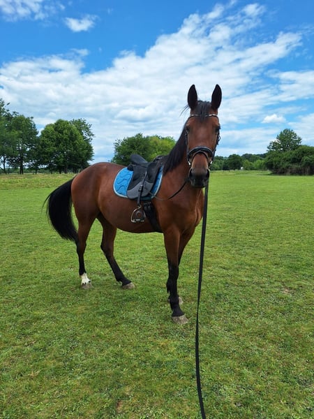A beautiful, well-behaved and healthy trotter gelding is for sale. He is dominant in the herd, but by no means aggressive. He is in the box at night and outside during the day. He is very cuddly towards people of all ages and loves children. Grooming, saddling, washing, leading, etc. are no problem at all. He is very comfortable to ride under saddle and is a real rocking horse at a walk. Ideal for long, comfortable rides in the countryside. He can trot from slow to very fast. While other horses canter, he can trot along just as quickly... He is very down to earth and not jumpy. He is very happy and motivated to ride out in the herd. When ridden out alone, he likes to go back to the stable, but if the rider is calm and consistent, he relaxes very quickly even when ridden out alone :-). Please contact me if you are interested or have any further questions. Thank you very much!