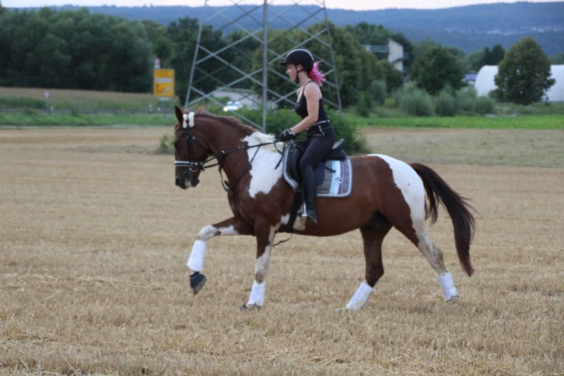 Manchmal passen die Ansprüche von Pferd und Reiter an die gemeinsame Arbeit leider nicht zusammen, weshalb ich entschieden habe, für meinen Wallach nach fast 6 gemeinsamen Jahren ein neues Zuhause zu suchen. „Leo“ ist ein 05/2016 geborener, 1,70m großer Fuchsschecke vom Zuchtverband Stud-Book Luxembourgois du Cheval de Sang (C.S.L). Er ist 2019 zur Ausbildung an den Stall gekommen, an dem ich mit meinem Senior stand. Dort hat er die Basics gelernt und wurde angeritten. Ab Mai 2020 habe ich mich um seine weitere Ausbildung gekümmert und ihn im November übernommen. Seitdem hat er alles schonend kennengelernt, was ein Reitpferd kennen sollte: Hufschmied, Tierarzt, Hängerfahren, Gelände alleine und in der Gruppe, Springen & Dressur zuhause wie auch Auswärts, Turniere, Straßenverkehr, etc. Als ich ihn damals gekauft habe, war er meine Hoffnung, wieder aktiv in den Reitsport einsteigen zu können und mich zu verbessern. Je weiter wir mit der Ausbildung kamen, desto deutlicher hat sich auskristallisiert, dass er dem Druck mental nicht standhält. Leo ist ein sehr sensibles, meinungsstarkes, charakteristisches Pferd. Er liebt lange Ausritte und Bodenarbeit mindestens genauso sehr, wie ein moderates Training. Daher würde ich ihn als sportliches Freizeitpferd bezeichnen, als reiner Sportler ist ihm der Druck zu hoch, als reines Freizeitpferd würde er jedoch eingehen. Er ist sehr schlau und will auch geistig gut ausgelastet werden. Ich habe ihn in der Dressur bis in die Klasse A** ausgebildet, bis A* ist er auf dem Turnier platziert. Im Springen sind wir meistens auf E Niveau unterwegs, was aber nicht an mangelndem Vermögen liegt, sondern an meiner Unsicherheit. Er ist für jeden Spaß zu haben, egal ob ohne Sattel, Gebisslos oder nur am Halsring, Leo lässt sich problemlos arbeiten und macht so sogar kleine Sprünge. Er braucht jedoch einen erfahrenen, sicheren Reiter, da er ein kleiner Angsthase ist und schnell unsicher wird. Auch seine mentale Überforderung äußert er in extrem schreckhaftem Verhalten. Ich würde mir einen ambitionierten Freizeitreiter für ihn wünschen, der ihn abwechslungsreich trainiert, vorrangig aber einfach eine gute Zeit mit ihm haben möchte und entsprechend seiner Bedürfnisse das Training anpassen kann. Er ist ein sehr soziales, aber ranghohes Pferd. Die optimale Haltung wäre eine kleine Offenstallherde ggf. mit nachts Box. Platz vor Preis, wird nur verkauft, wenn alles zu 110% passt
