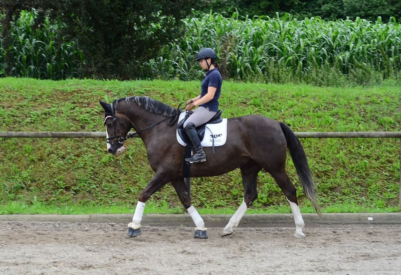 Sehr sympathischer Dunkelfuchs-Wallach mit ehrlichem Charakter und guten Nerven und angenehmen Sitzkomfort. Mit Talent und Vorsicht am Sprung kennt er auch schon kleinen Parcours. Ein toller Allrounder für den vielseitigen Einsatz für Dressur, Springen, Freizeit und Gelände.