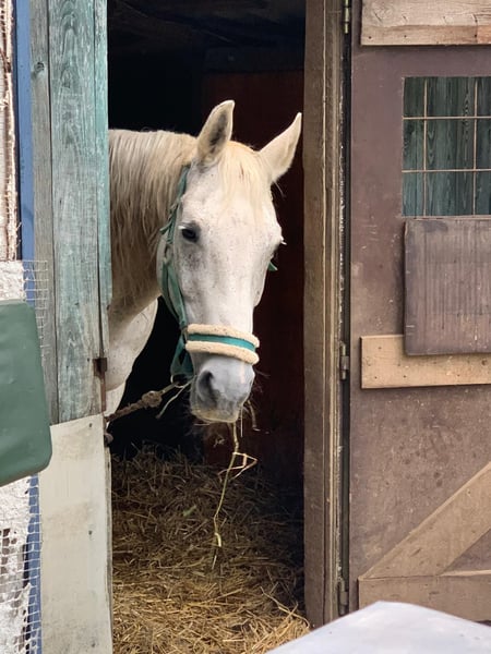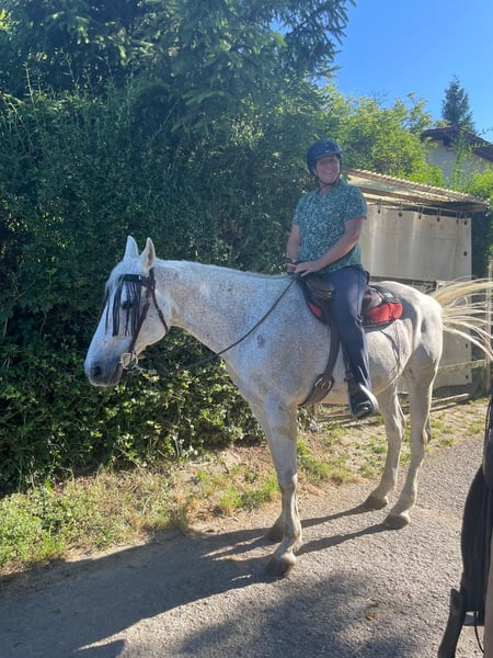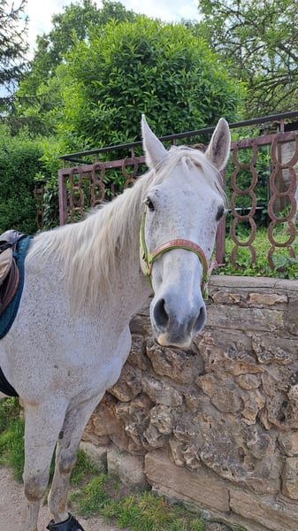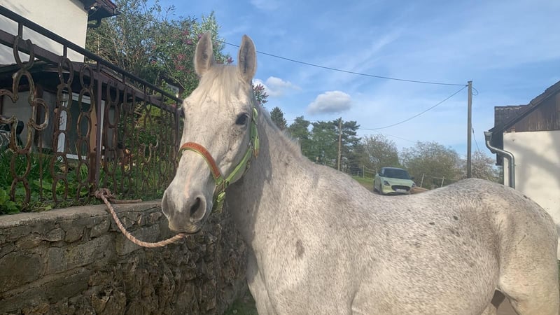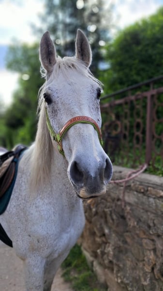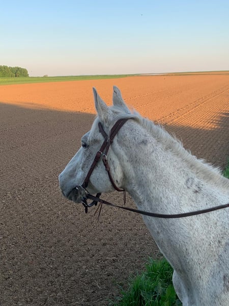 Braver, sehr freundlicher und fitter ungarischer Warmblutwallach (20 Jahre) sucht wegen Unterbeschäftigung ein gutes neues Zuhause Bounty ist ein freundlicher und braver ungarischer Warmblut-Schimmel-Wallach, der trotz seiner 20 Jahre noch beschäftigt werden will. Er hat ein Stockmaß von 158 cm und ist voll reitbar. Bei uns wird er derzeit ins Gelände geritten oder geht auch brav als Handpferd mit. Er lässt sich im Gelände an jeder Position reiten und ist immer gut händelbar. Leider können wir ihm aus zeitlichen Gründen nicht die Beschäftigung bieten, die er gern hätte und die ihm gut täte, deshalb suchen wir ein gutes neues Zuhause für ihn mit Pferdegesellschaft, am besten in einem größeren Stall, wo er nicht allein bleiben muss. Bei uns steht er mit nur zwei anderen Pferden zusammen, was es schwierig macht, wenn er einmal nicht dabei sein könnte. Allein bleiben ist nicht sein Ding. In der Herde ist er verträglich, bei seinen früheren Besitzern stand er im Offenstall zusammen mit 27 anderen Pferden. Bounty ist vorne beschlagen, hinten geht er barhuf. Bounty ist kein Notverkauf, wir geben ihn in seinem Interesse schweren Herzens und nur in wirklich gute Hände ab (keine Händler). Im Preis enthalten sind seine Trense, mehrere Decken, 1 Paar Hufschuhe und ein Wintec-Sattel (englisch). Momentan wird er von uns auch mit einem baumlosen Deuber Westernsattel geritten, der bei Interesse gegen einen Aufpreis von 500 € mit erworben werden kann. Bitte nur ernstgemeinte Anfragen!