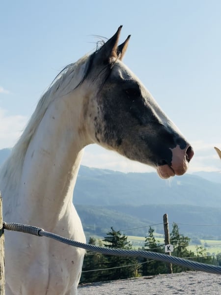3j pinto mix wallach wegen zeitmangel zu verkaufen! hatt momentan ca ein stkm 156cm kennt bodenarbeit freispringen freiarbeit reitergewicht hufschmied und ist verladefrom. er ist ein motivierter neugieriges pferd das gefallen und arbeiten will. Aktuell in einen offenstall/robust haltung kennt aber auch box. preis is inkl zubehör VHB
