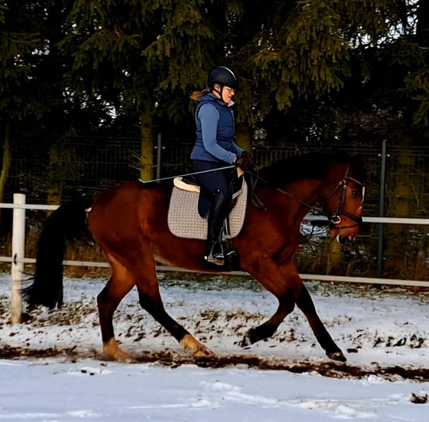 ISANDER – SW Crossbred Gelding with Excellent Character For sale is a lovely 4-year-old gelding, standing at 1.60 meters with good conformation. He is well-trained in all three basic gaits. He is confident cross-country and jumps small obstacles. He has a strong walk and an uphill canter. He is gentle and friendly in handling and very uncomplicated. Perfect for advanced recreational riding, including dressage and jumping. He is healthy, dewormed, and herd-friendly. Transport can be arranged. Videos available via WhatsApp. Location: Lusatia near Görlitz